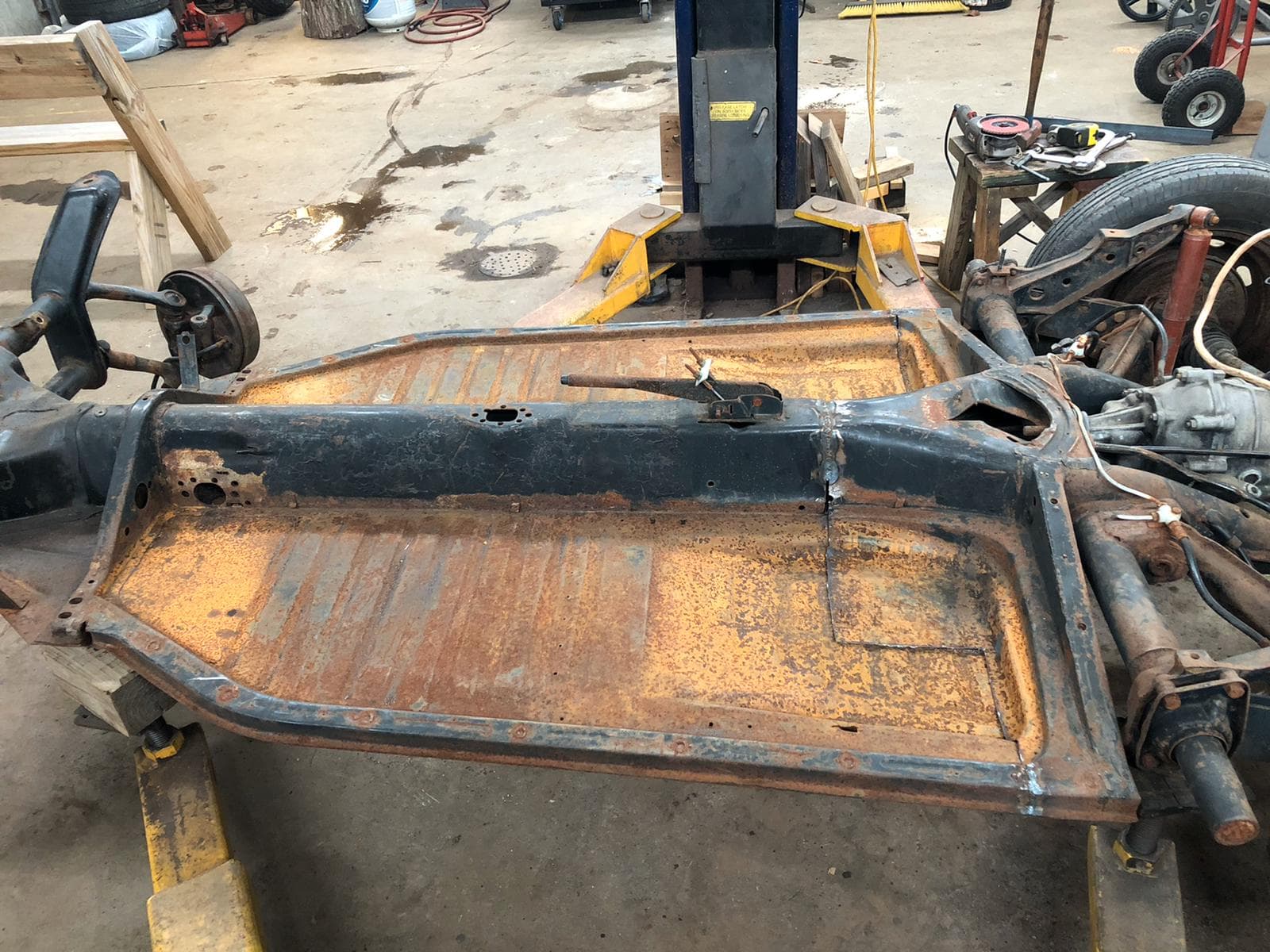 The 700 has sat for so long prior to john discovering it that the earth has quite literally started to reclaim the car, rendering the original chassis unusable. So, John put the BMW on a VW Beetle floorplan instead.