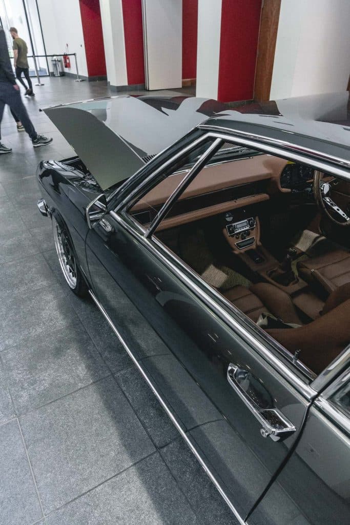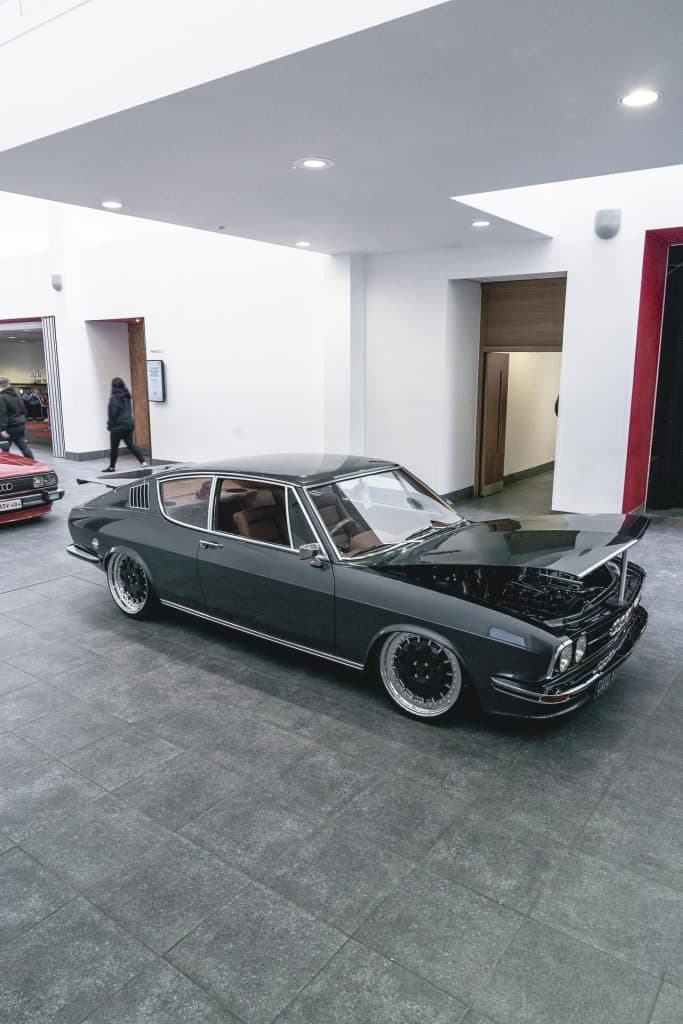 The first thing that caught our eye in the entrance hall was the shape. The Audi 100 S Coupe isn’t something you see every day. In fact, relatively few were produced and even less survive today. It’s such a well proportioned and pretty car, with a sloping fast back roofline.