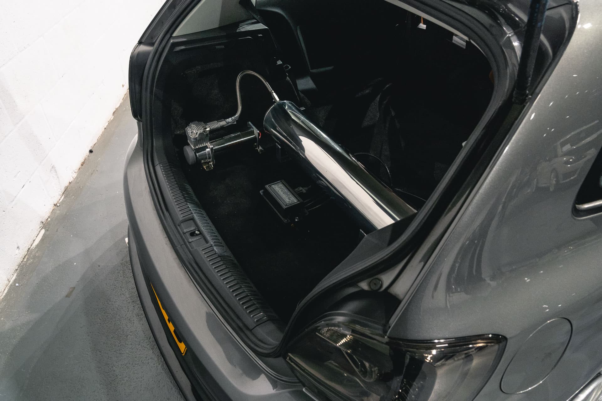 In the trunk, a polished tank and compressor continues the theme.