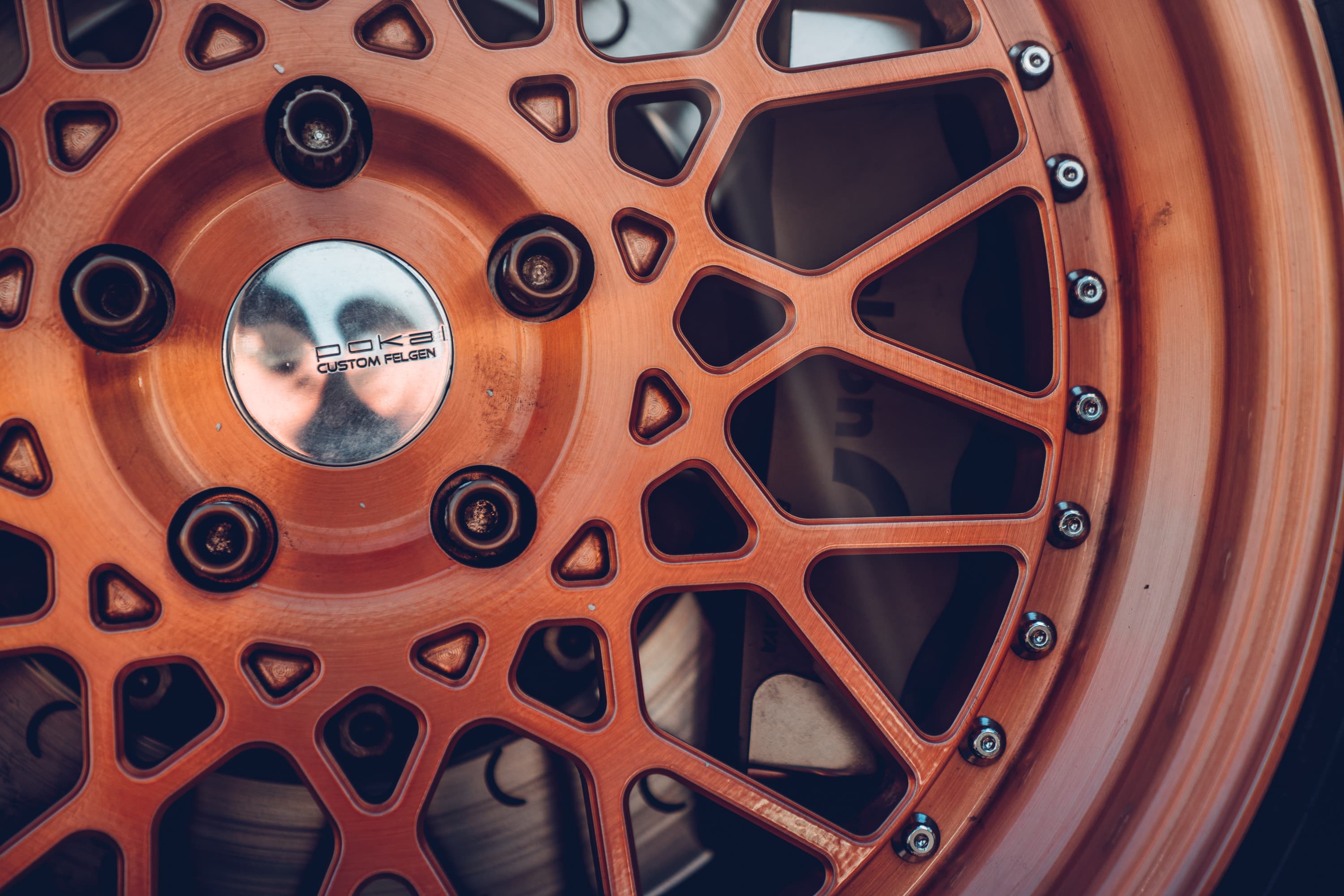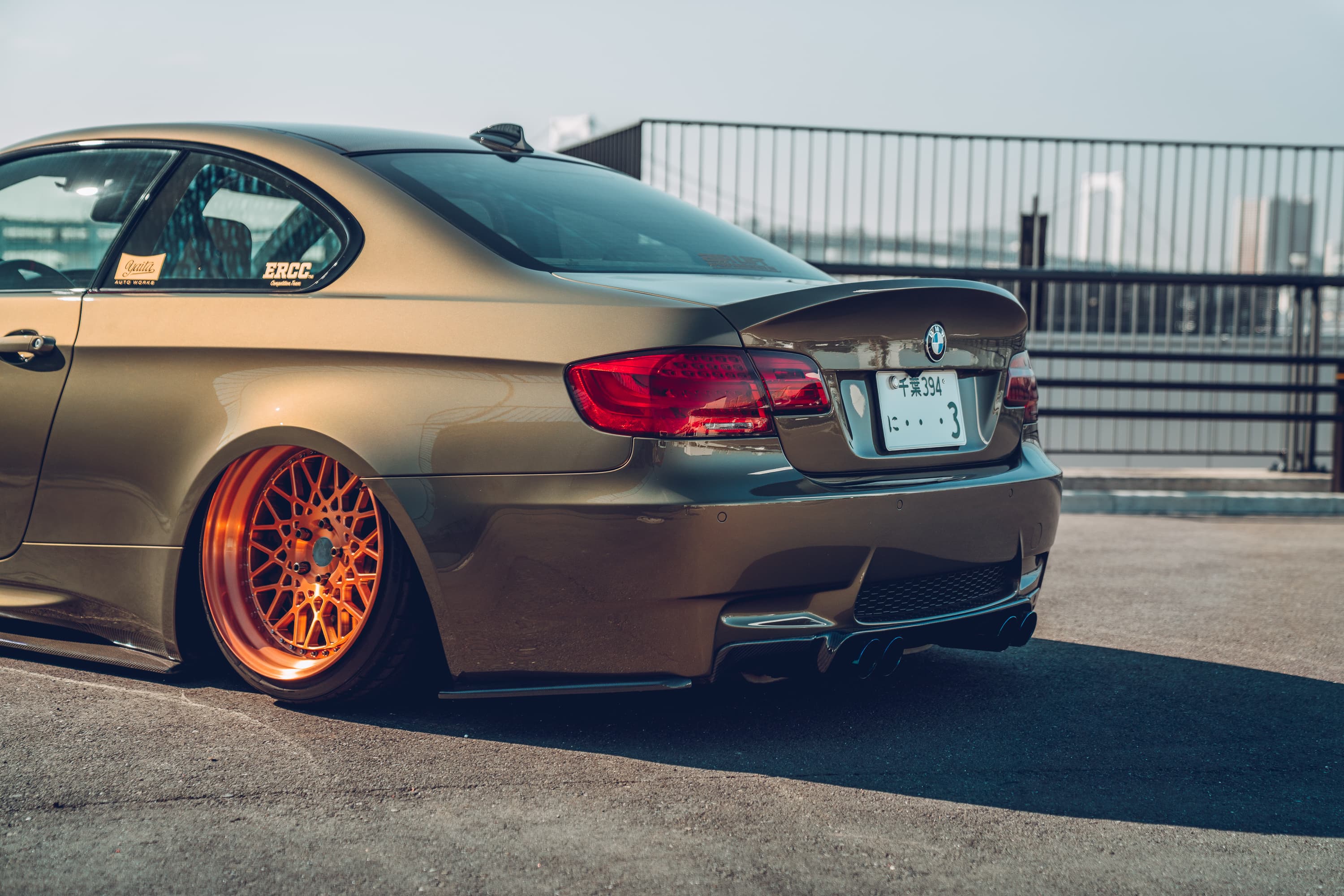 Ryo brought the M3 along in ‘street’ spec, which utilizes a set of 19in Pokal GRB02 wheels finished in bright copper over brushed aluminum. Tuckin’ perfectly within the arches (with a little tyre stretch) the Pokals work perfectly for both street and show use, but when it comes to track driving Ryo has a set of 18in wheels (wrapped in super-sticky tyres) which – when combined with a tweak of the damping – allows him to use all 414bhp in anger without compromise!