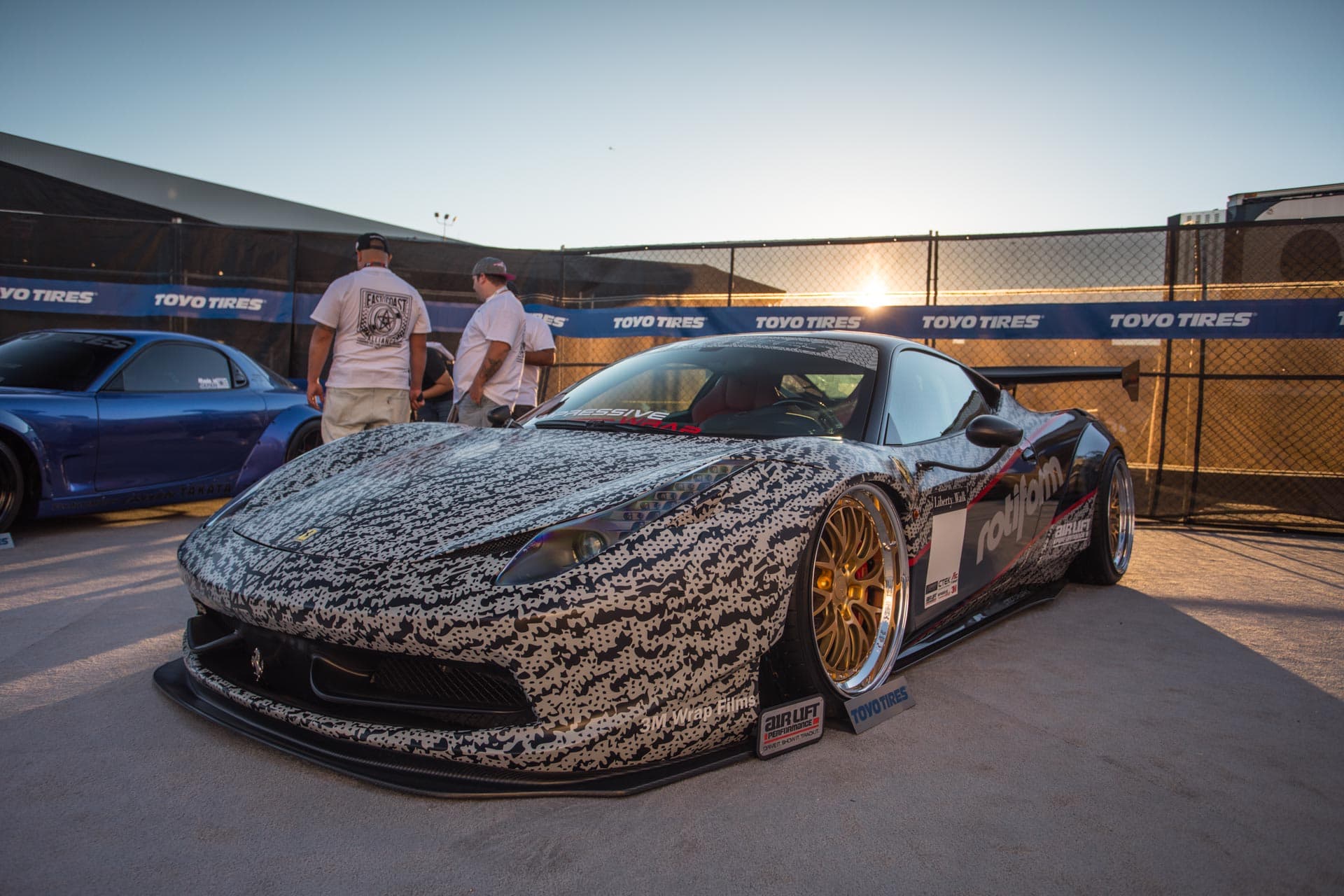 So, what about a Liberty Walk-equipped Ferrari 458 slammed on 20-inch Rotiforms and an Air Lift Performance suspension? Yup, that’ll do nicely…